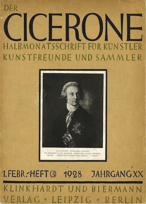 DER CICERONE, Halbmonatsschrift für Künstler, n°3, 1928, Jahrgang XX Leipzig – Berlin, Klinkhardt und Biermann, 29 X 21 cm., 35p., illustrations (17038)