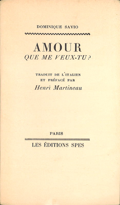 Paris (Saint Maurice d’Etelan), Spes Editions (Pierre Bettencourt), undated (1950), 17 x 10 cm. One of 90 numbered copies on Arches vellum, number 61 (17043 FD).