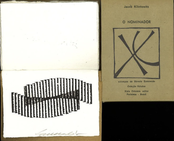 “With 3 prints by Sérvulo Esmeraldo, Fortaleza, Xisto Colonna, 1983, 13 X 9.5 cm., cover one of the ten non-commercial numbered copies, n°H/C, I/X (17060 FD)”