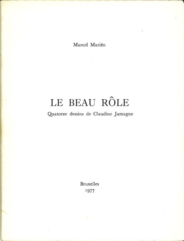 Brussels, Isy Brachot and Tom Gutt, 1977, illustrated with 14 drawings by Claudine Jamagne, 21 x 16 cm. One of 50 copies on Arches Ingres vellum accompanied by an original engraving by Claudine Jamagne, numbered, n°XII, signed by Marcel Mariën and Claudine Jamagne. Enriched with an original ink drawing signed and dated 1977 by Claudine Jamagne (16537 FD).