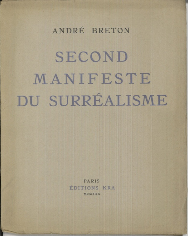 Paris, Kra Editions, 1930, 28.3 x 22 cm. Sent from André Breton to his parents. Copy is discolored, with slight tears and a small missing piece on the spine (AE2016).