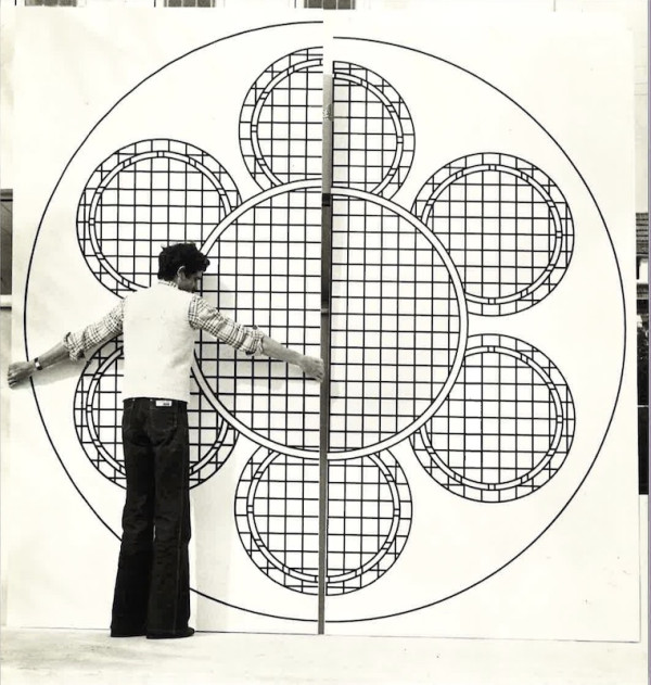 JEAN-PIERRE RAYNAUD WORKING ON ONE OF HIS STAINED GLASS WINDOWS FOR THE ABBEY OF NOIRLAC, circa 1975 Photographic print, 21 X 18 cm. (TP4)