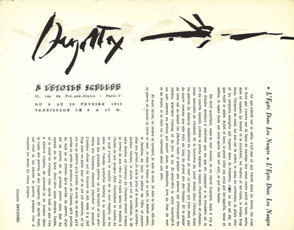 Invitation, Paris, L’étoile scellée, 1955, 27 X 21 cm., feuille imprimée recto verso Textes de Charles Estienne et André Breton (4389 E)