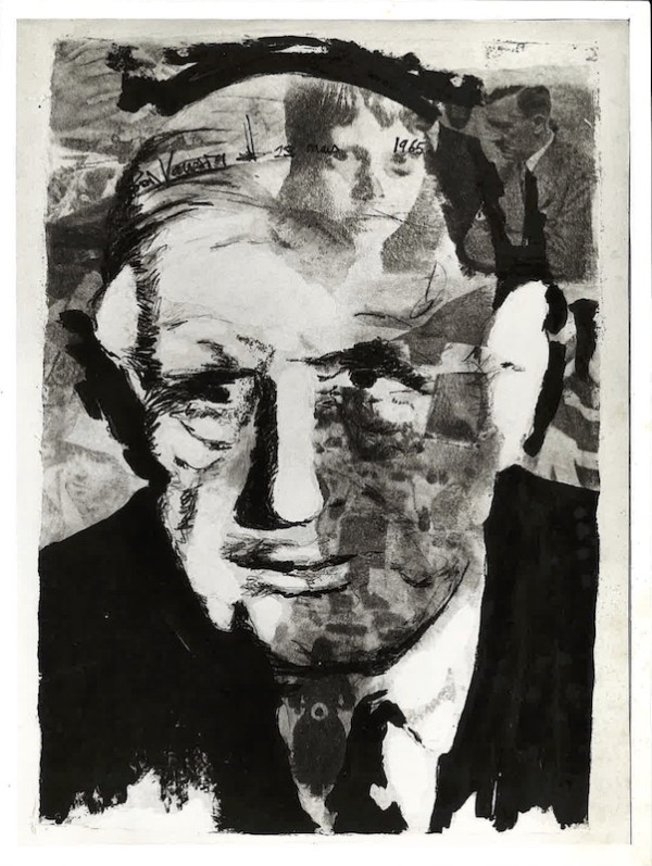 Photograph taken, most likely, during the exhibition “30 portraits of General de Gaulle” from June 2nd to July 6th at the Iris Clert Gallery
