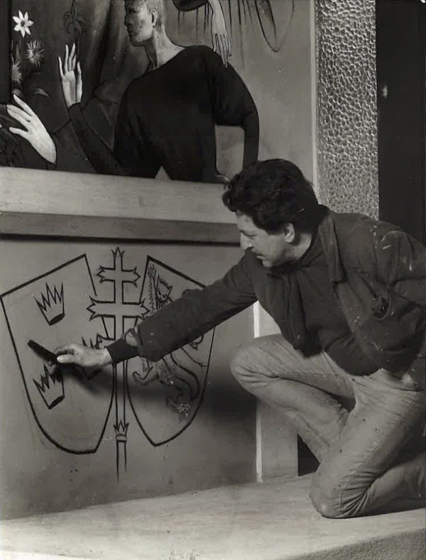 JEAN-DENIS MAILLAR AT NOTRE DAME CHAPEL IN DEAUVILLE, 1961 Photographic print, 16.8 X 12.8 cm., stamp on the back (CNSA)