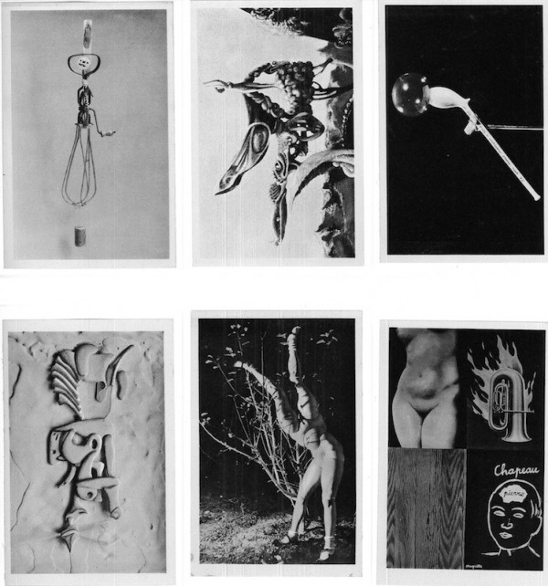 Paris, Georges Hugnet, 1937, 21 cartes imprimées sur papier bleu, 9 X 14 cm. chaque. Ensemble complet accompagné de l’étiquette bleue de titre. Cartes de Max Ernst, Marcel Jean, Oscar Dominguez, Hans Arp, Marcel Duchamp, Pablo Picasso, Joan Miro, André Breton, Georges Hugnet, Yves Tanguy, Nush Eluard, Salvador Dali, Dora Maar, René Magritte. Décolorations
