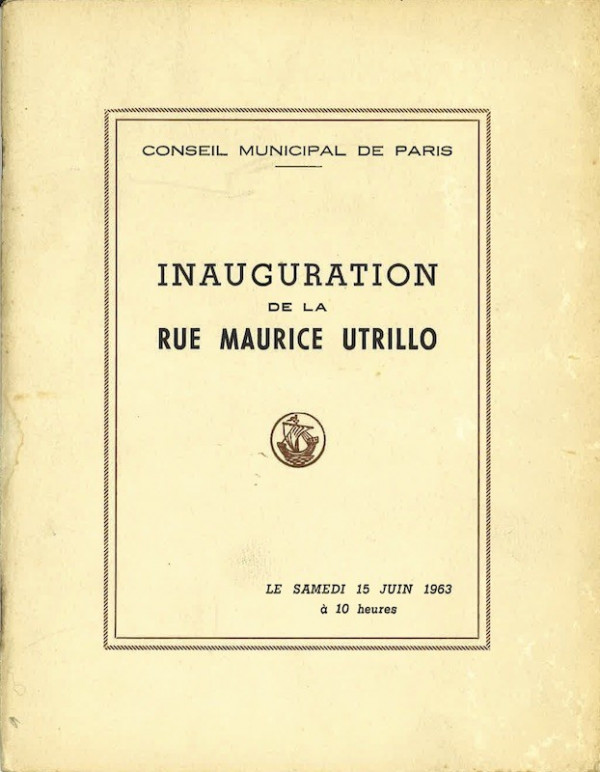 Paris, Municipal Council of Paris, 1963, 22.5 x 17.5 cm, 27 pages, illustrated with a photographic portrait of Utrillo by André Hostier. Texts by Dunoyer de Segonzac, Gaëtan Picon, Pierre-Christian Taittinger (16285E).