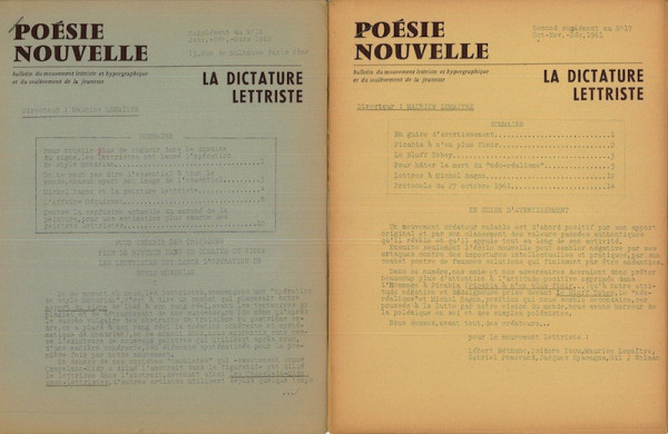 NEW POETRY. THE LETTERIST DICTATORSHIP, Bulletin of the Lettrist, Hypergraphic, and Youth Uprising Movement, Second Supplement to Issue 17, Oct. – Nov. – Dec. 1961 – Supplement to Issue 18, Jan. – Feb. – Mar. 1962 (FLMF) price per booklet: