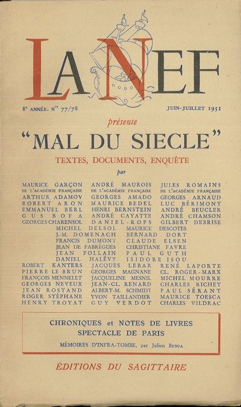 DISEASE OF THE CENTURY. Text documents, investigation, Paris, Sagittaire Editions n°77-78, June-July 1951 (14171 MM).