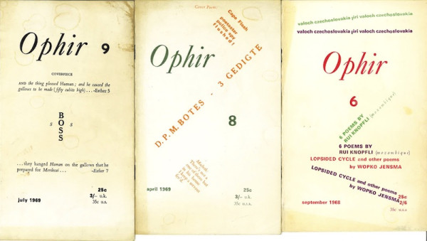 OPHIR, Magazine, Pretoria, edited by Peter Horn and Walter Saunders, poems by Michael Macnamara, Wopko Jensma, Rui Knopfli.