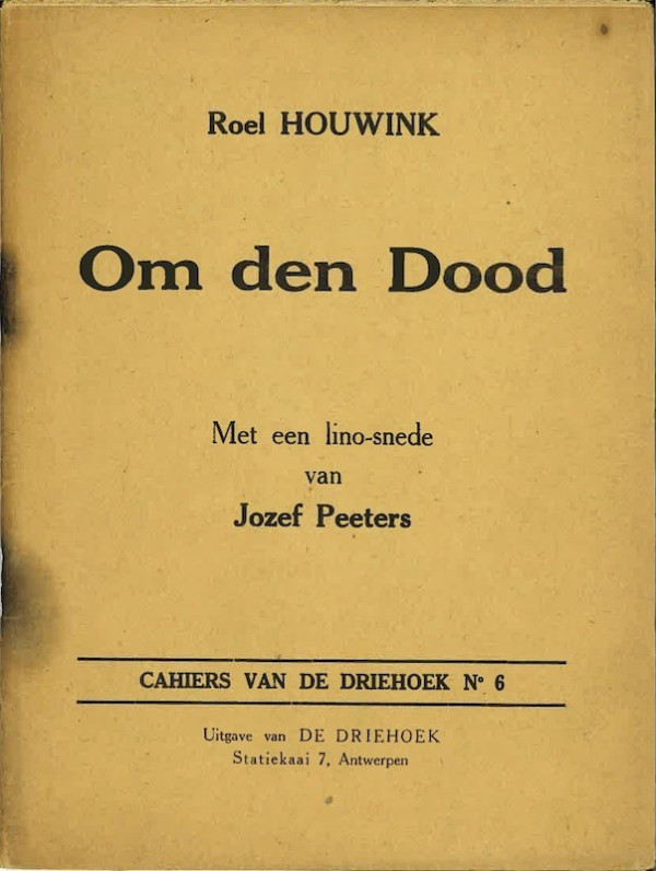 Illustrated with a linocut by Jozef Peeters Cahiers Van De Driehoek, no. 6, Antwerp, SD, 18.5 x 14 cm, 30 pages. Printed in 300 numbered copies, no. 291 (17122 E).