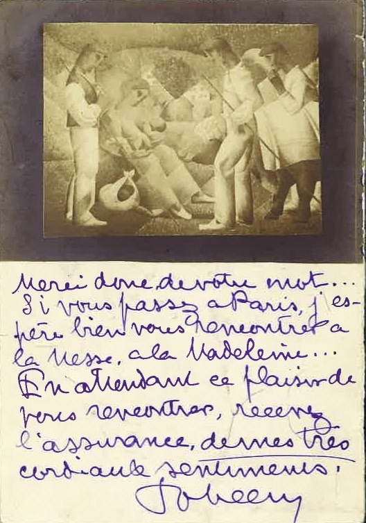 ILLUSTRATED POSTCARD, 1913 Postcard, 13 X 9 cm. Letter sent by the painter on 14-12-13 to Germaine Venès (mother of Pierre Cabanne) at 17 av. Trudaine in Paris. (TP6)