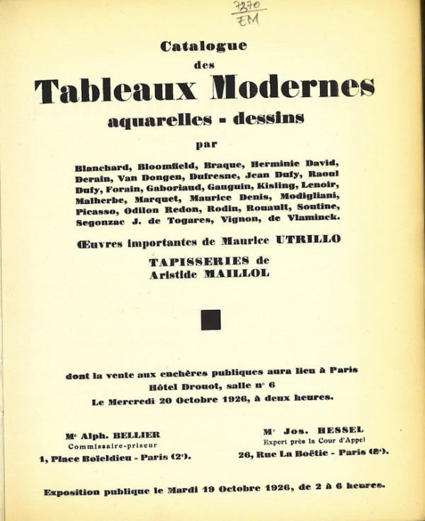 Sales catalog, Mr. Alph. Bellier, Paris, Hotel Drouot, October 20, 1926. (7370 E)