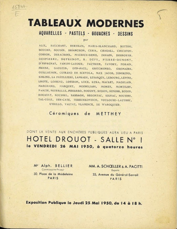 Sales catalogue, Mr. Alph. Bellier, Paris, Hôtel Drouot, May 26th, 1950 (15847 E)