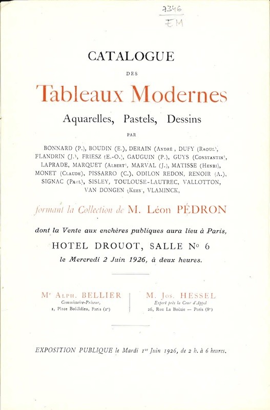 Sales catalog, Mr. Alph. Bellier, Paris, Hôtel Drouot, June 2, 1926. (7346 E)