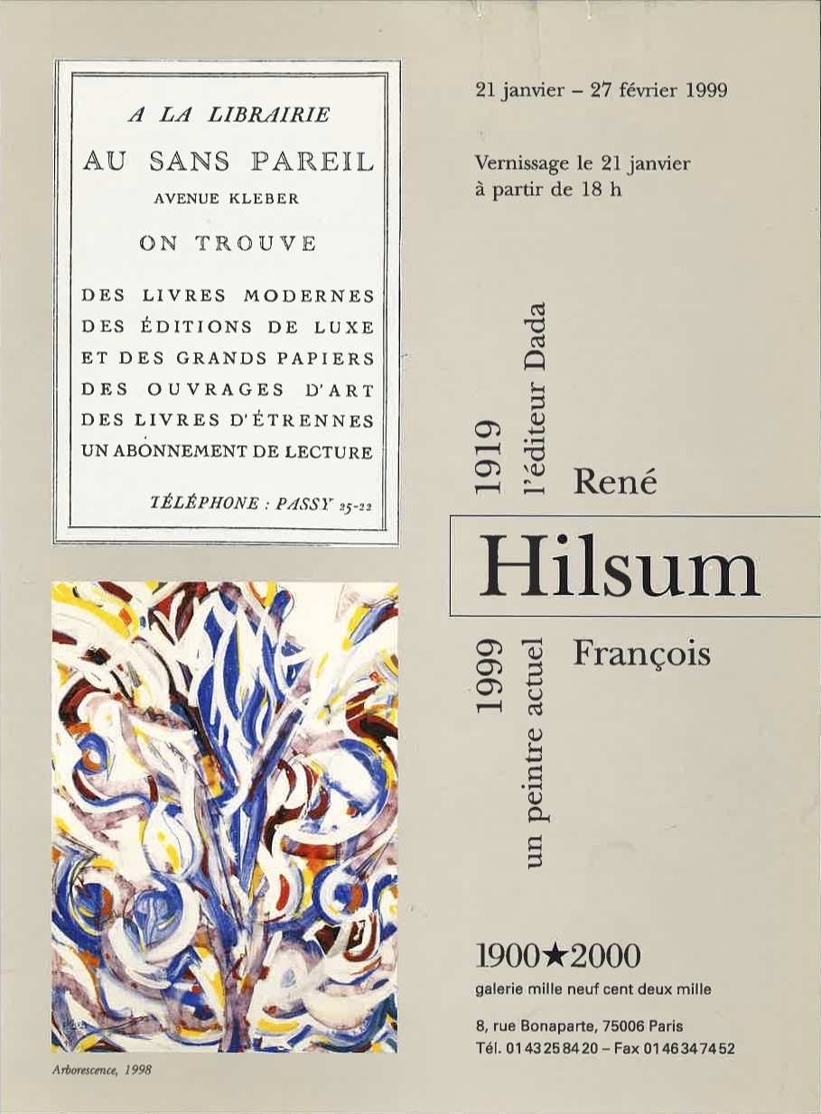 RENE HILSUM, L’EDITEUR DADA / FRANCOIS HILSUM, UN PEINTRE ACTUEL. 1919-1999